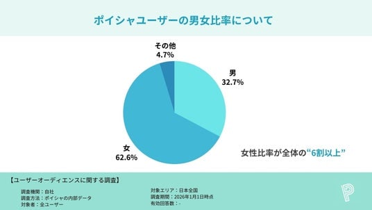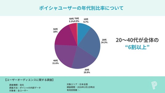 その結果、女性比率が約6割、20代~40代が全体の約7割を占めるなど、ポイシャが“生活に根付いたポイ活アプリ”として幅広い世代に浸透している実態が明らかになりました。