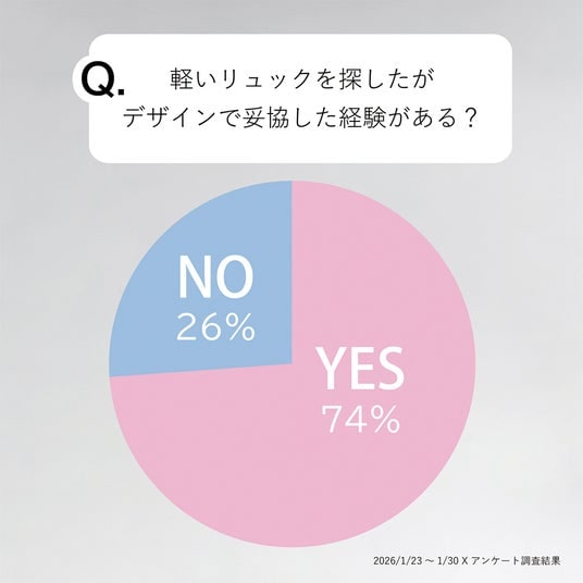 その結果、軽さを重視してリュックを選んだ経験のある人のうち、約74%が「デザイン面で何らかの妥協をしたことがある」と回答。