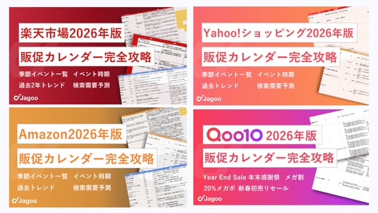 ジャグーが支援してきた企業においても、イベント開催前の準備を念入りに行っている企業ほど、安定して売上を伸ばしている傾向が見られます。こうした背景から、モールごとに「いつ・何が起きるか」と「その月に伸びやすい検索需要」を一つに整理し、担当者が迷わず販促設計に着手できる実務資料として、2026年度版の販促カレンダー4種を作成・公開しました。