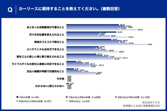 ■カーリースへの期待、短距離層は「初期費用不要」、長距離層は「税金・車検コミコミ」が最多に