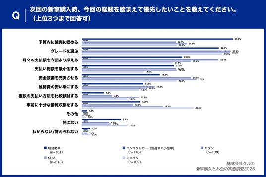 Q.次回の新車購入時、今回の経験を踏まえて優先したいことを教えてください。(上位3つまで回答可)