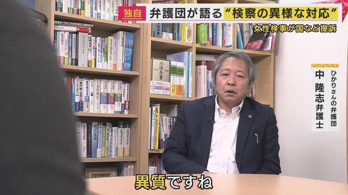 中隆志弁護士:異質ですね。被害者と共に寄り添うという姿勢が他の事件ではありましたけど、なかなか寄り添ってもらえているという雰囲気がない。現場の検事は、決裁の権限とかきっとないので、上層部から『彼女に対する対応は、こういう対応でいい』というような、指示がされているのではないかと推測はしますけれど。