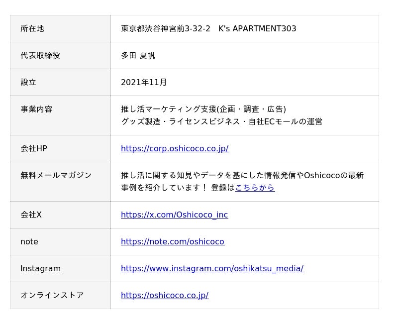 弊社は"推し活”女子をターゲットに、オタク領域でオンラインストア・メディア運営を実施しております。また、企業様向けにオタク企画プロデュースやコンサルティングを行っております。