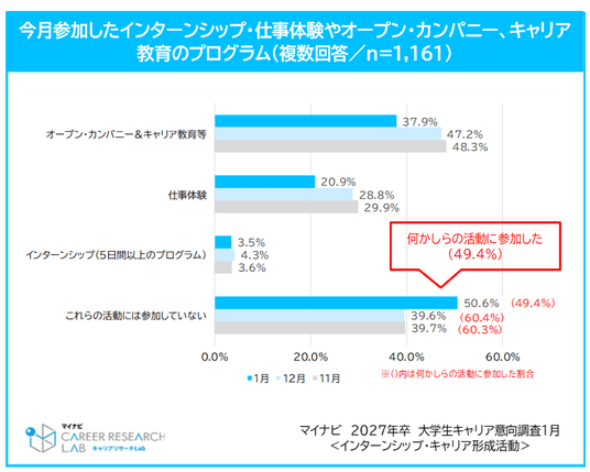 「マイナビ 2027年卒 大学生キャリア意向調査1月<インターンシップ・キャリア形成活動>」
