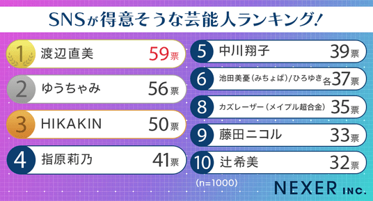 株式会社NEXER・SNSが得意そうな芸能人に関する調査