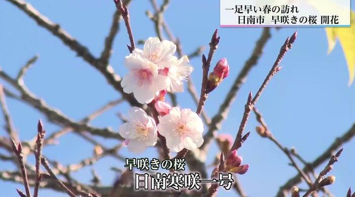 日南寒咲一号は地元出身の黒木國光さんが「正月に咲く桜をつくりたい」と交配を重ね、1951年に誕生させた桜だ。