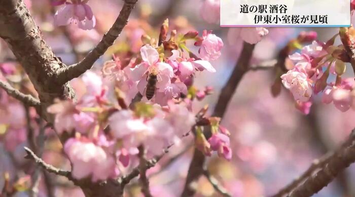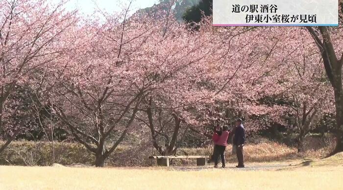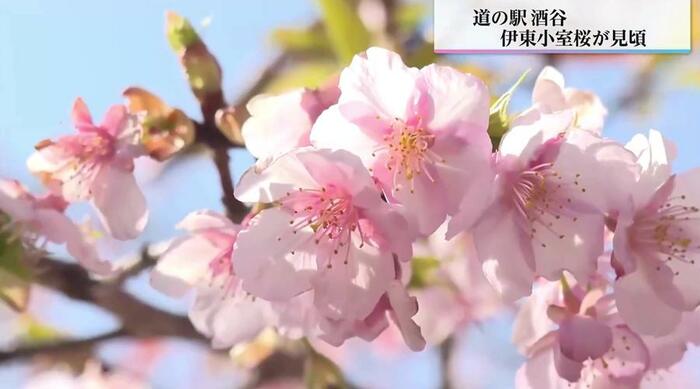 道の駅酒谷では、早咲きの「伊東小室桜」が見頃となっている。