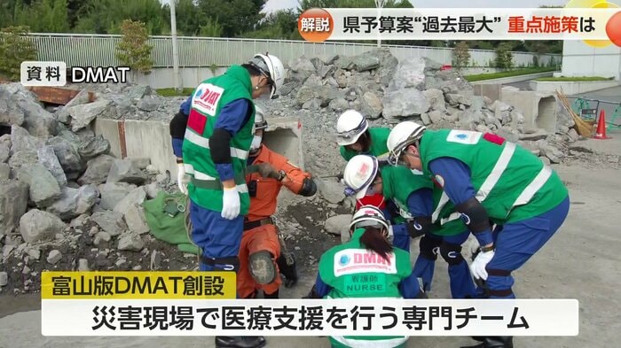 また、災害医療体制の強化として、災害発生時に現場で必要な医療支援を行う専門チーム「富山版DMAT」の養成にも取り組む計画だ。