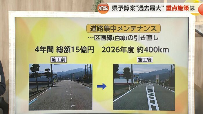 特に注目されるのは、インフラ整備における「政治判断」である。県は新年度、区画線の整備、いわゆる道路の白線の引き直しに集中的に取り組む。