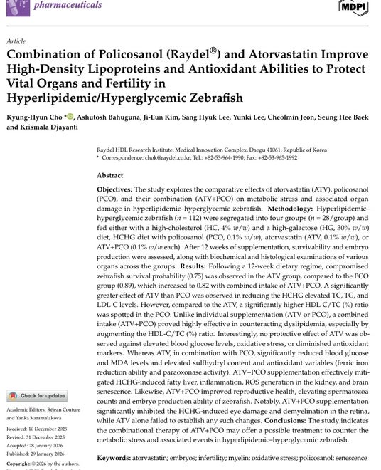 株式会社レイデルジャパンは、当社グループが研究・開発を行うキューバ産ポリコサノールと、脂質異常症治療に広く使用されているスタチン(アトルバスタチン)との併用を評価した前臨床研究の成果が、SCIE収載の国際学術誌『Pharmaceuticals』に掲載されたことをお知らせいたします。