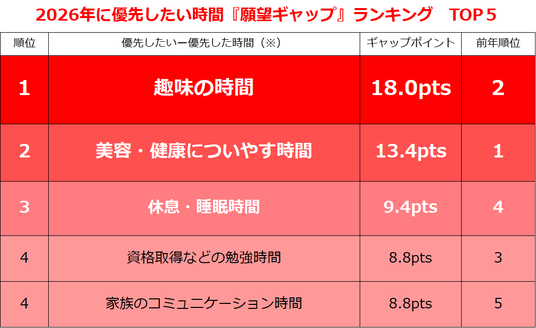 6.2026年に優先したい時間『願望ギャップ』/ランキングTOP5