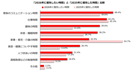 5.「2026年に優先したい時間」と「2025年に優先した時間」比較