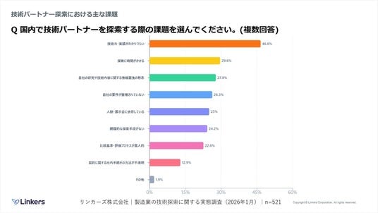 国内技術パートナー探索の最大の課題は「技術力・実績がわかりづらい」46.6%