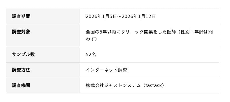 本調査結果が、これから開業を志す医師が、後悔や失敗を避け、将来を見据えた選択を行うための示唆を提供することを目指します。