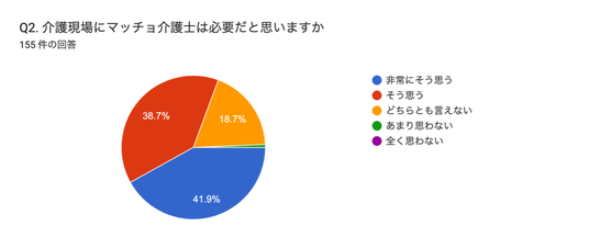 アンケートでは、「マッチョ介護士は介護現場に必要だと思いますか?」という質問に対し、スタッフの80%以上が“必要だと思う“と回答し現場からも肯定的な反応が見られました。