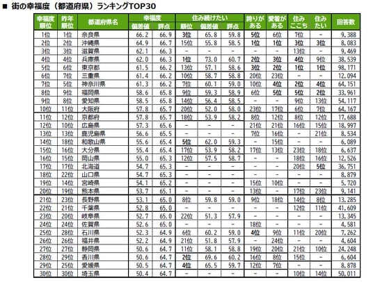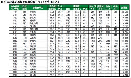 街の幸福度<TOP30>&住み続けたい街<TOP23>都道府県ランキング