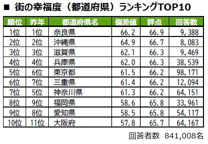 ■街の幸福度(都道府県)トップは、5年連続で奈良県