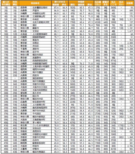 住み続けたい街(自治体)ランキング2025<全国版>1~50位