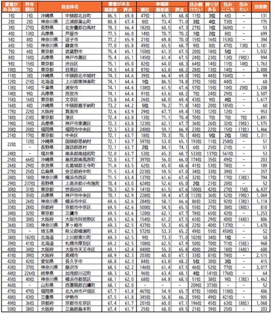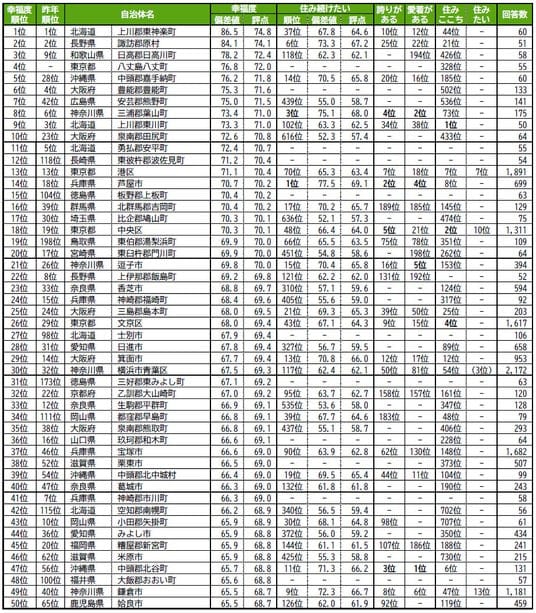 街の幸福度(自治体)ランキング2025 <全国版>1~50位