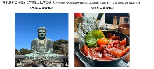 そのような仮説のもと、株式会社JTB総合研究所(東京都港区 代表取締役社長執行役員 風間 欣人)は、SNSに投稿された鎌倉観光の写真から、それぞれの色味や被写体、画角などの分析を行い、「外国人観光客と日本人観光客が切り取る、それぞれの鎌倉」としてまとめました。