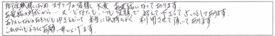 本調査のアンケート回答より:「開園時間に合わせて早い時間に伺うことが多いのですが、皆さん笑顔で丁寧に応対してくれてとても感じがいいです」