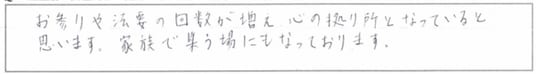 本調査のアンケート回答より:「お参りや法要の回数が増え、心の拠り所となっていると思います。家族で集う場にもなっております。」