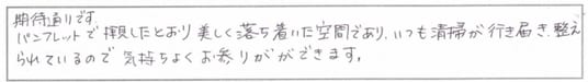 本調査のアンケート回答より:「自宅が離れているため訪問頻度は限られているが、いつ訪問してもきれいで、安心できる期待通りの場所である」
