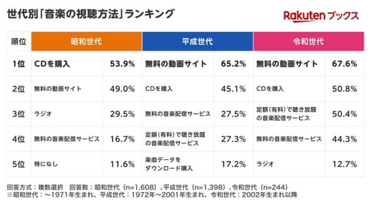 ・音楽の視聴方法は「昭和世代」では「CDを購入」が1位に。「令和世代」のCD購入理由は「アーティストを応援したいから」が最多
