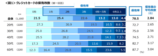 クレジットカードの保有率は78.5%、保有者の平均枚数は2.84枚。