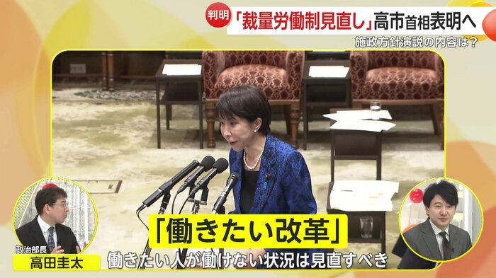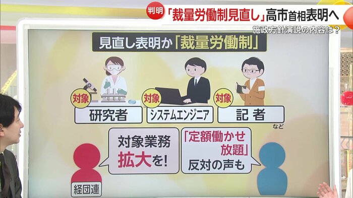 あくまで今回は「見直し」という、プラスにもマイナスにも取れる表現ですが、高市首相の本音としては当然、拡充より裁量労働でできるものは広げていこうという考え方とみられます。