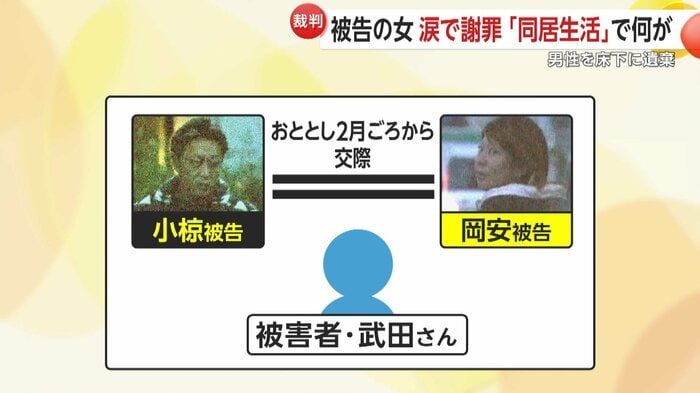 その後、武田さんが同居するようになったことについて、岡安被告は18日の裁判で「何でいるのか不思議だった」「途中で(小椋被告の)舎弟みたいだと知った」と述べた。