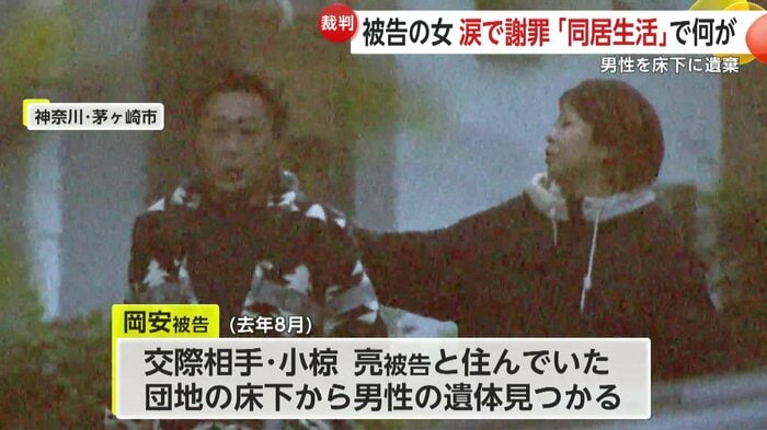 神奈川・茅ヶ崎市の団地で交際相手の男とともに同居していた男性の遺体を埋めた罪などに問われている女が、18日に行われた初公判で起訴内容を認め、「本当に申し訳ないと思っている」と涙ながらに謝罪した。初公判では、被害者と交際相手の男らと同居する中で起きた暴行の経緯が明らかになった。