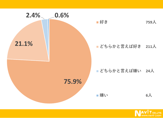 「温かい飲み物は好きですか?」という質問については、「好き」が75.9%、「どちらかと言えば好き」が21.1%と、合わせると97.0%の人が温かい飲み物が好きだと回答していました。
