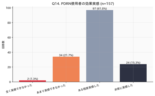 ・PDRN使用経験者の84.3%が効果を実感 - 「非常に実感した」21.5%+「ある程度実感した」62.8%