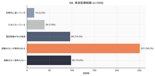 美容医療経験:4割超に経験あり、「興味はある」層が最大