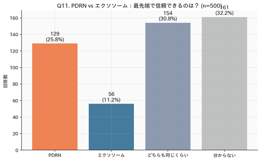 ・PDRNはエクソソームを上回る信頼感 - 「最先端で信頼できる」でPDRN 27.6% vs エクソソーム 19.6%