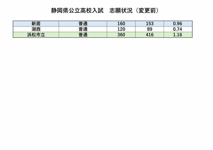 新居・湖西・浜松市立の志願状況は以下の通り。