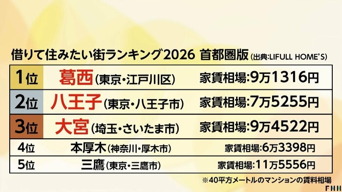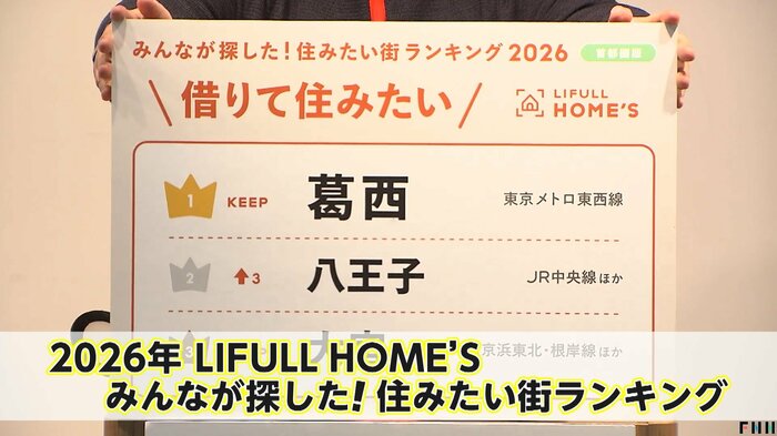 不動産検索サイトを運営するLIFULLが発表した2026年の「住みたい街ランキング」だ。掲載された物件への問い合わせ数を駅別に集計したもので「利用者が本気で探した街」が分かるランキングだ。