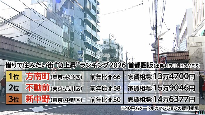 LIFULLが発表した2026年版「住みたい街」ランキングで、東京メトロ丸ノ内線の方南町駅が2025年から66ランク上昇し、急上昇ランキングの1位となった。新宿まで11分という利便性に加え、周辺沿線の家賃上昇に伴う割安感が人気の要因となっている。