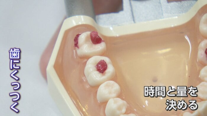 グミの主な原料は水飴と砂糖。他のおやつに比べて粘着力が高く歯にくっつきやすいため、量を決めて食べることが大切である。また、食べた後はフロスなどを使って奥歯の溝までしっかり歯磨きをするよう五郎丸院長は勧めている。