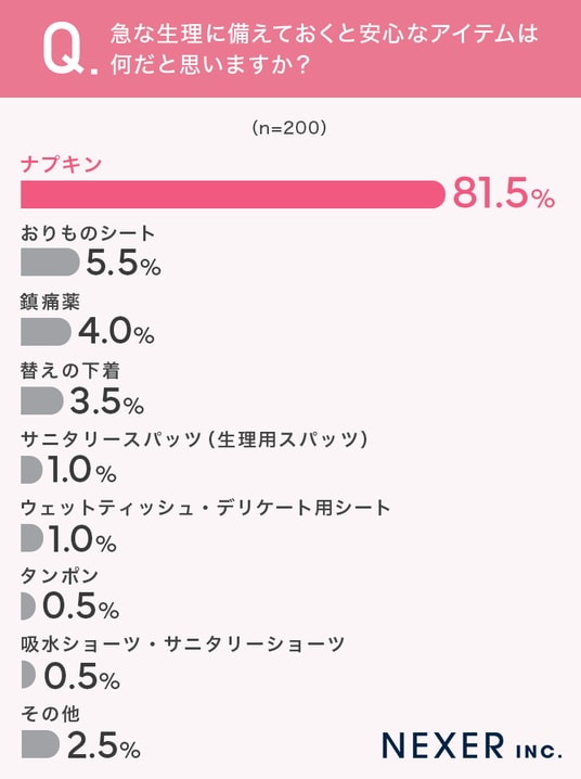 ■81.5%が、安心アイテムとして「ナプキン」と回答