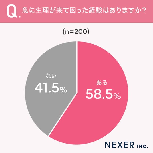■58.5%が「急に生理が来て困った経験がある」と回答