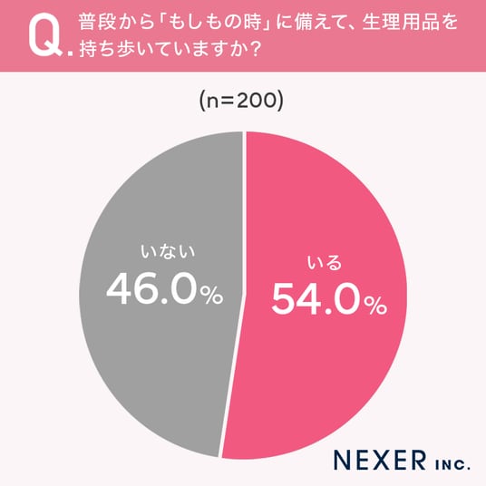 ■54.0%が、生理用品を「持ち歩いている」と回答