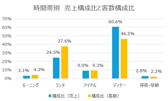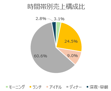 - ディナータイムで売上の60.6%、昼夜の格差大