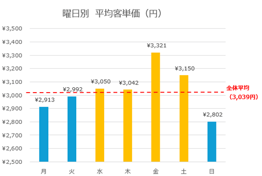 ・ 金曜日:17.4%(客単価3,321円)← 客単価最高