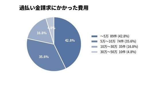 - 過払い金請求の手続きにかかる費用は「10万円以内」が大半を占める