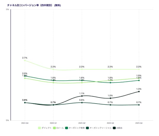 AI経由のトラフィックのコンバージョン率は前年比55%増の1.3%