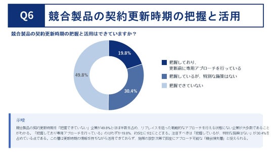 競合製品の契約更新時期を把握し、リプレイス提案に活用できているかを聞いたところ、「把握できていない」が49.8% とほぼ半数を占めました。