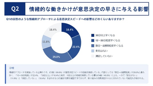 情緒的アプローチを実施している企業に対し、意思決定スピードへの影響を聞いたところ、69.8%が「早くなった」と回答しました。