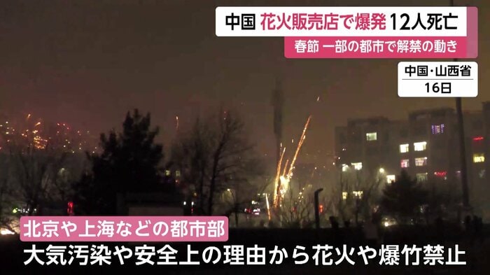 大気汚染や安全上の理由から、近年北京や上海などの都市部では花火や爆竹の禁止が続いているが、一部の都市では解禁の動きが広がっている。
